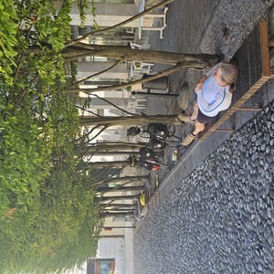 One thing we haven’t yet worked out is the opening times. No café displays opening times, just a sign on a string saying ‘Ferme’. When we arrived in the Netherlands, on Monday, we learned that Monday was the day for cafés to be shut. One day later, in southern Netherlands, it is Mondays AND Tuesday. By the time we are in Belgium, the custom has shifted to Wednesday. Now it is Saturday morning, 10:30 and we sit at a table outside another café with a ‘Ferme’ sign in a sleepy village (inhabitants at current count: 2 cats). We got used to it by now. An elderly man drives up, sees the sign and drives off again. So does an old woman. They two must still be working out the opening hours. But no, the woman comes back shortly after, very animated with the key and tells us that “Madame” is on her way. In the meantime, she opens the café and sits down with a bag of potatoes, which the man who now returned as well, might peel with her some time later in the day. Now “Madame” arrives and the coffee machine is started. We just had a nice snack and are ready to move on, but it is obvious, this whole turn up was for our benefit and we better order a capuchin. When I see her produce the squirty cream bottle I change my order to an espresso. While I sip that I cannot but admire the relaxed and convivial vibe of this place.